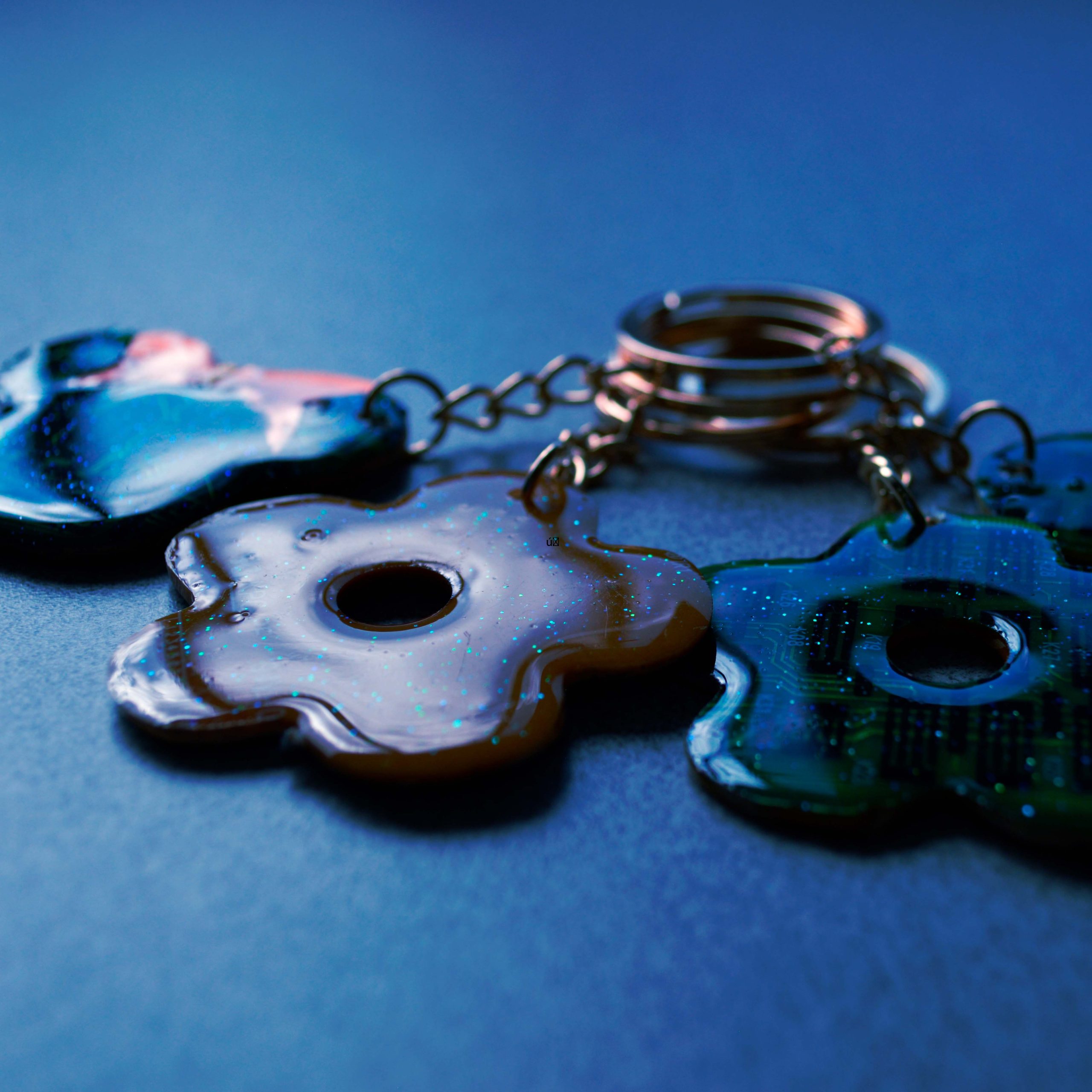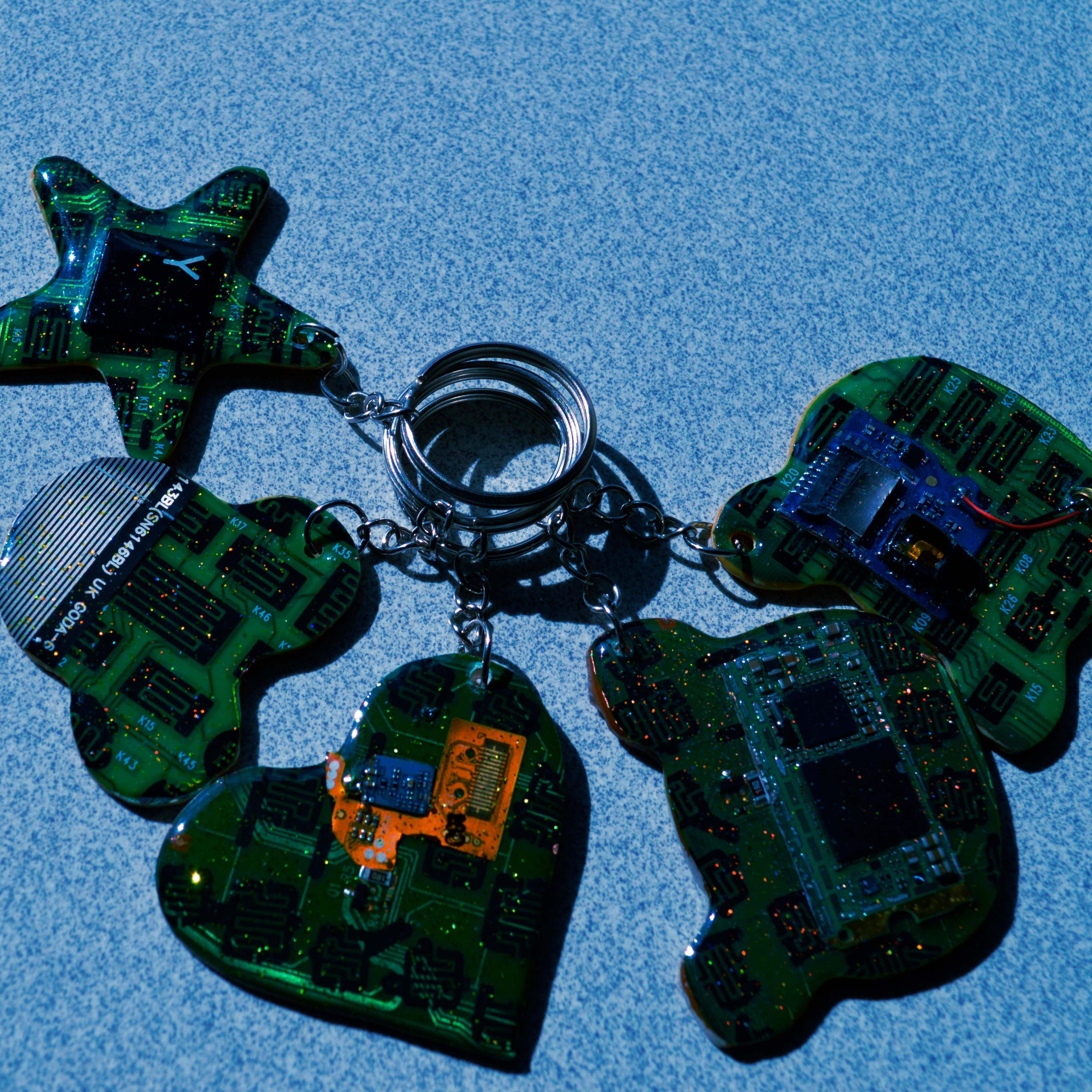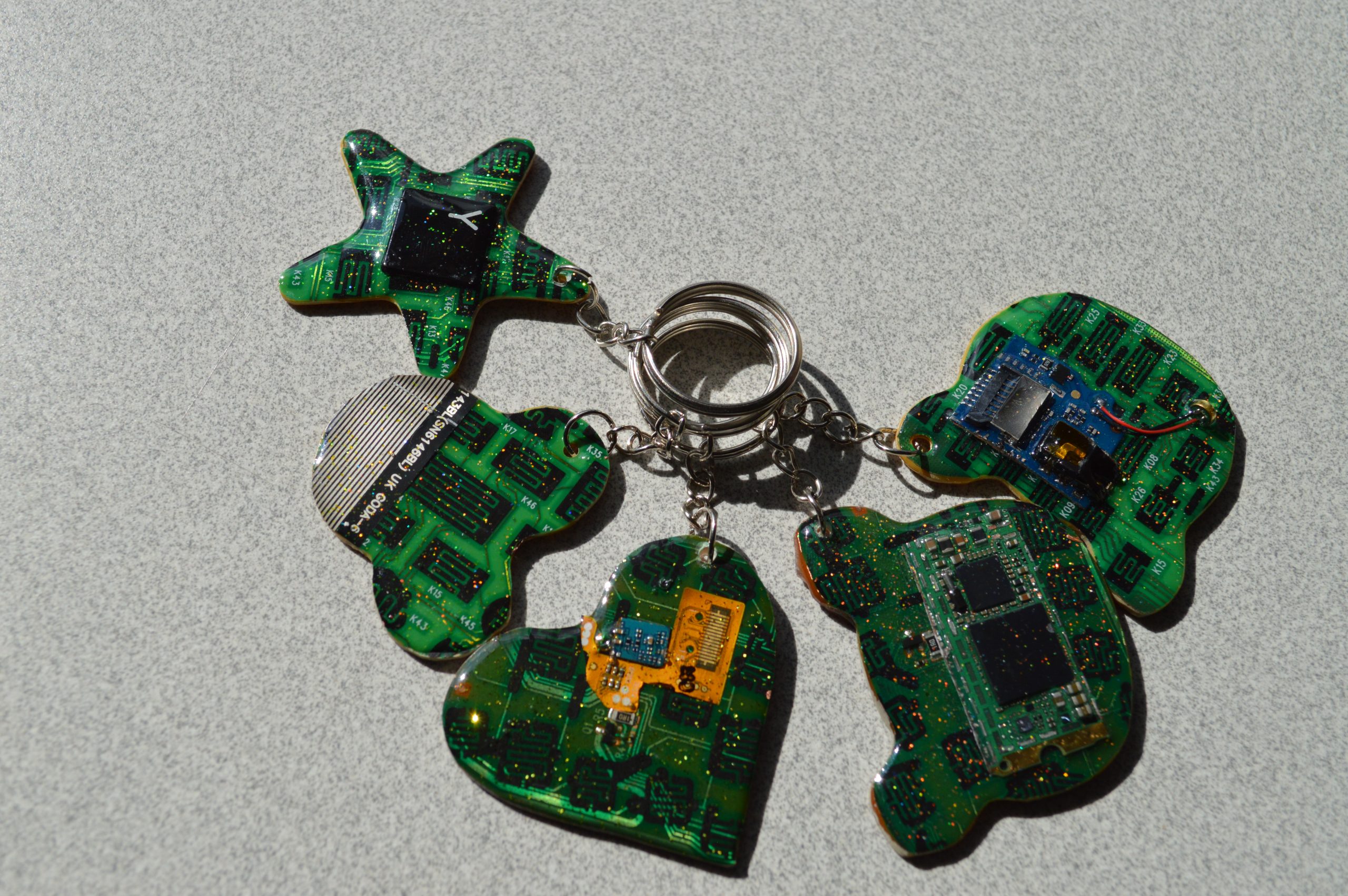 Llaveros Personalizados Hechos de Residuos Electrónicos
