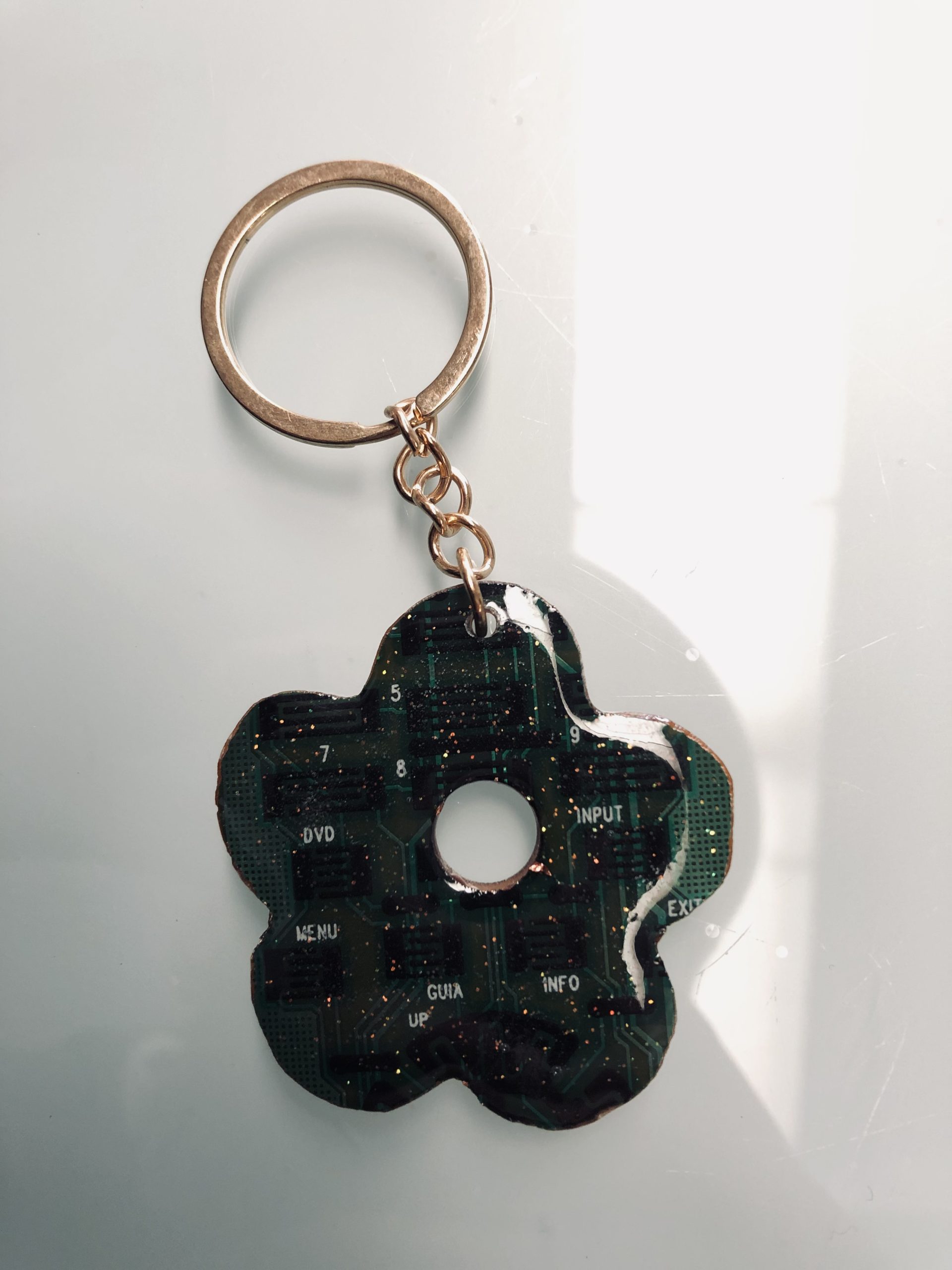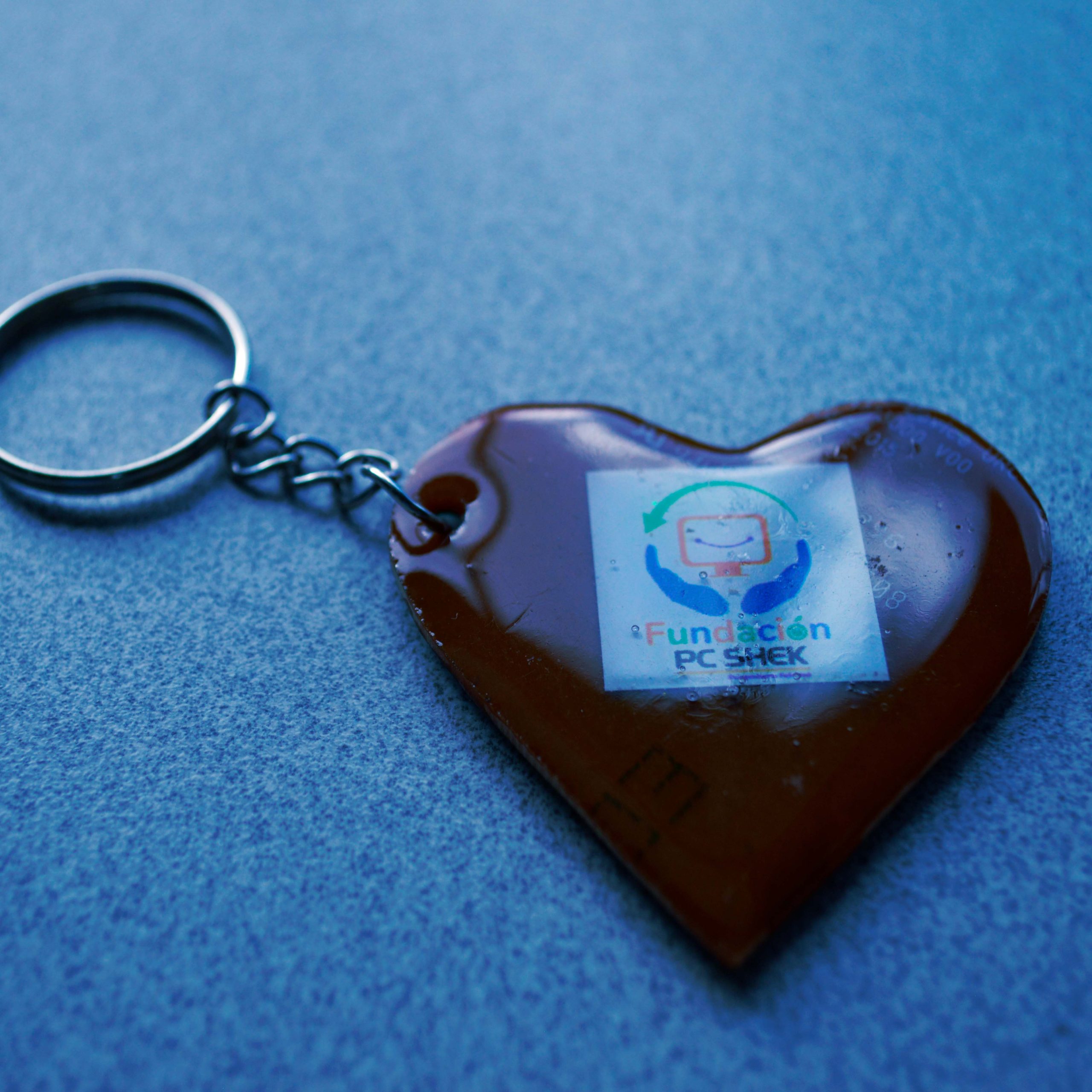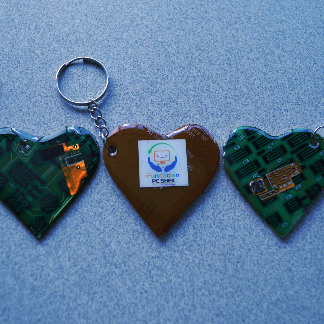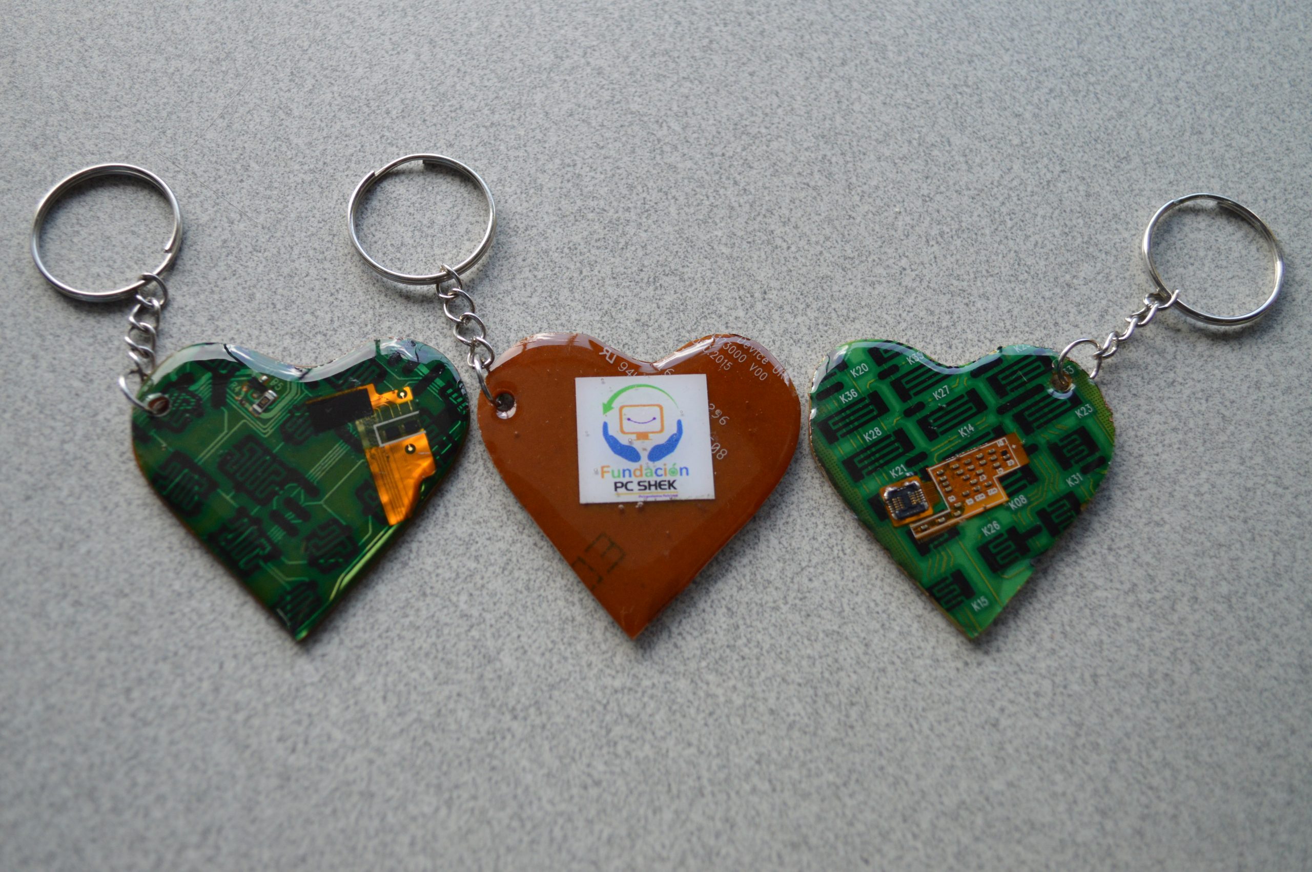 Llaveros especiales, confeccionados con residuos electrónicos reacondicionados. ¡Cada uno de estos llaveros cuenta una historia única de reciclaje y creatividad!